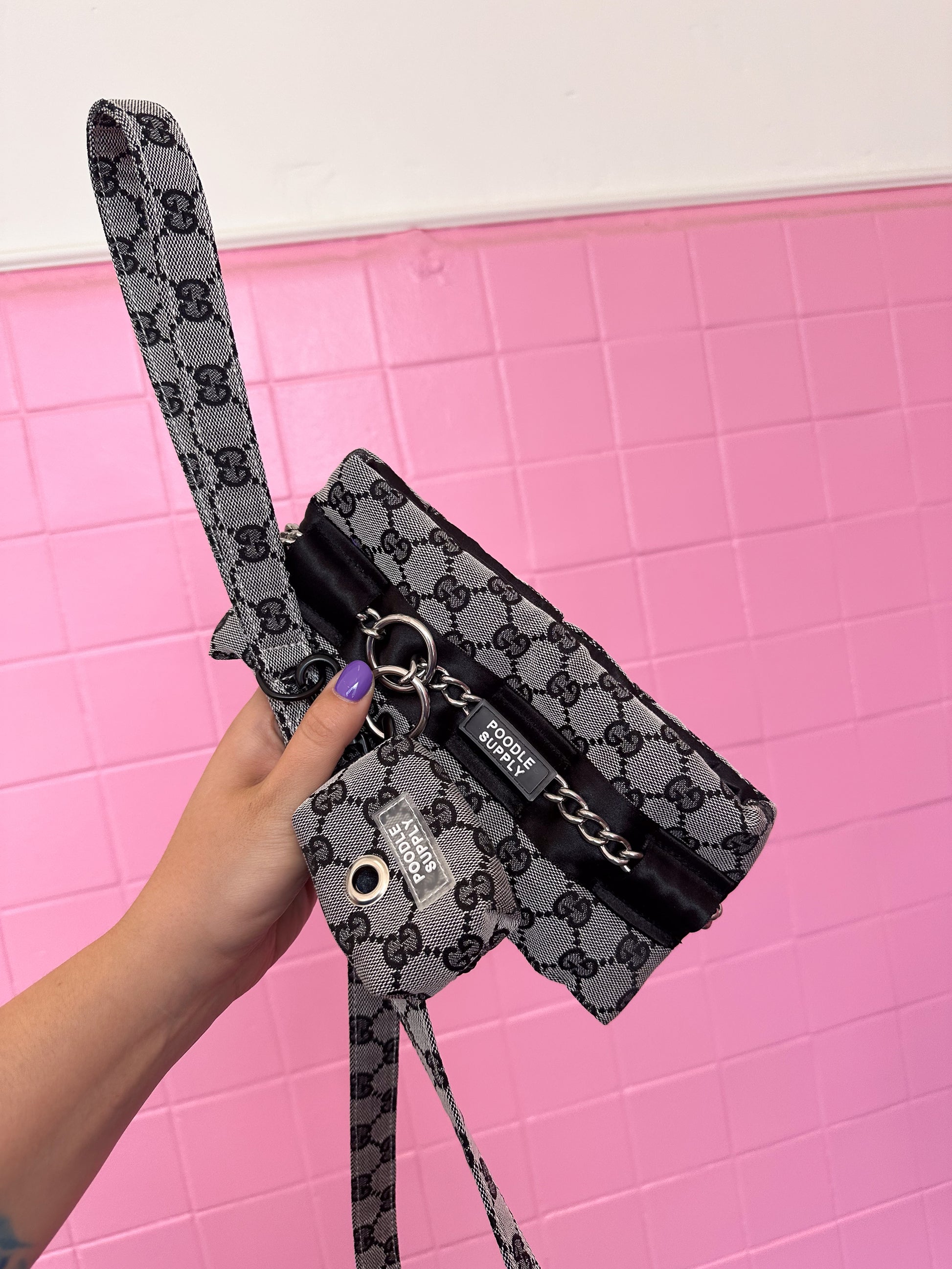 You can choose between individual items or the complete set (collar + leash + poop bag) in the variant options.