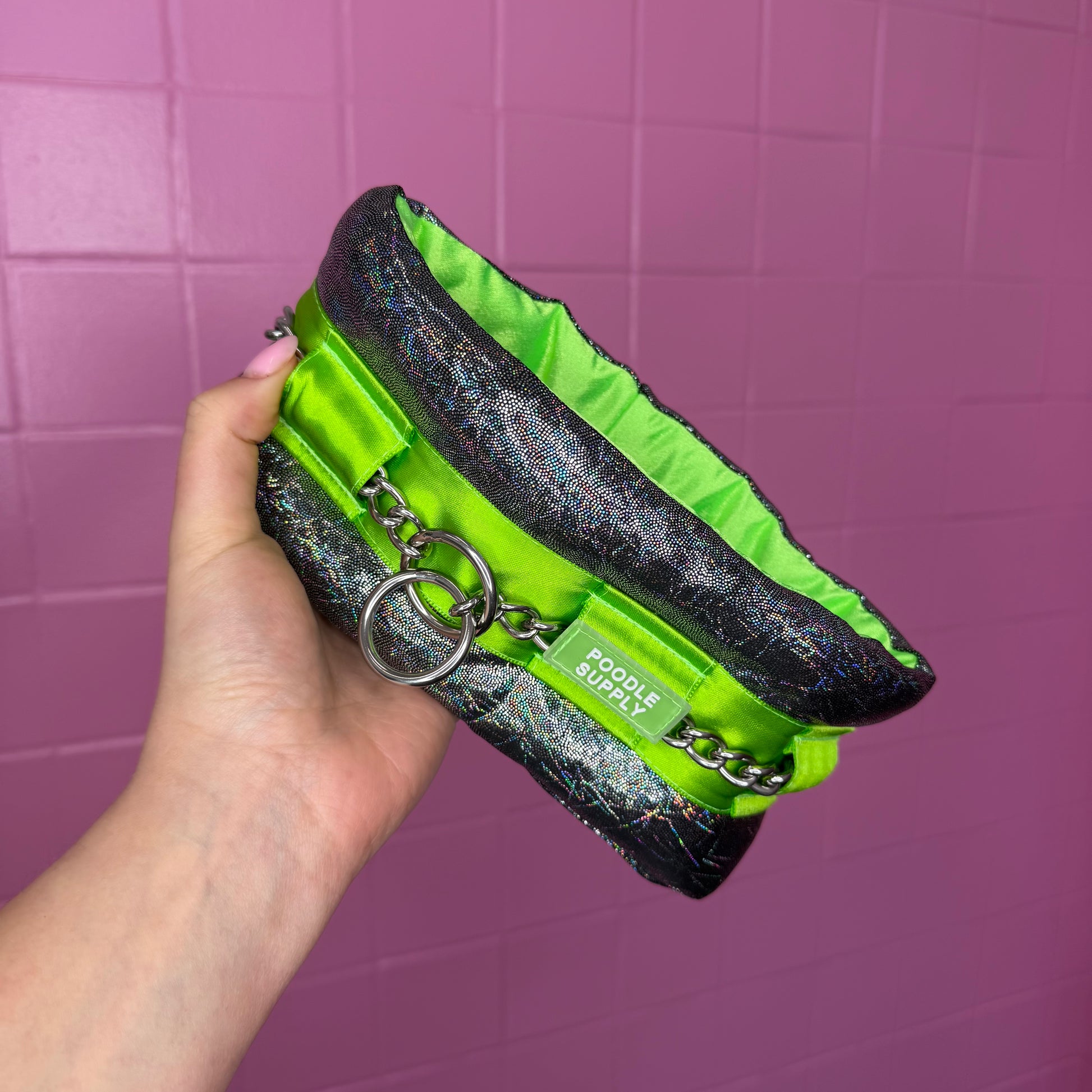 Fluffy Chain Collar - Lime Black