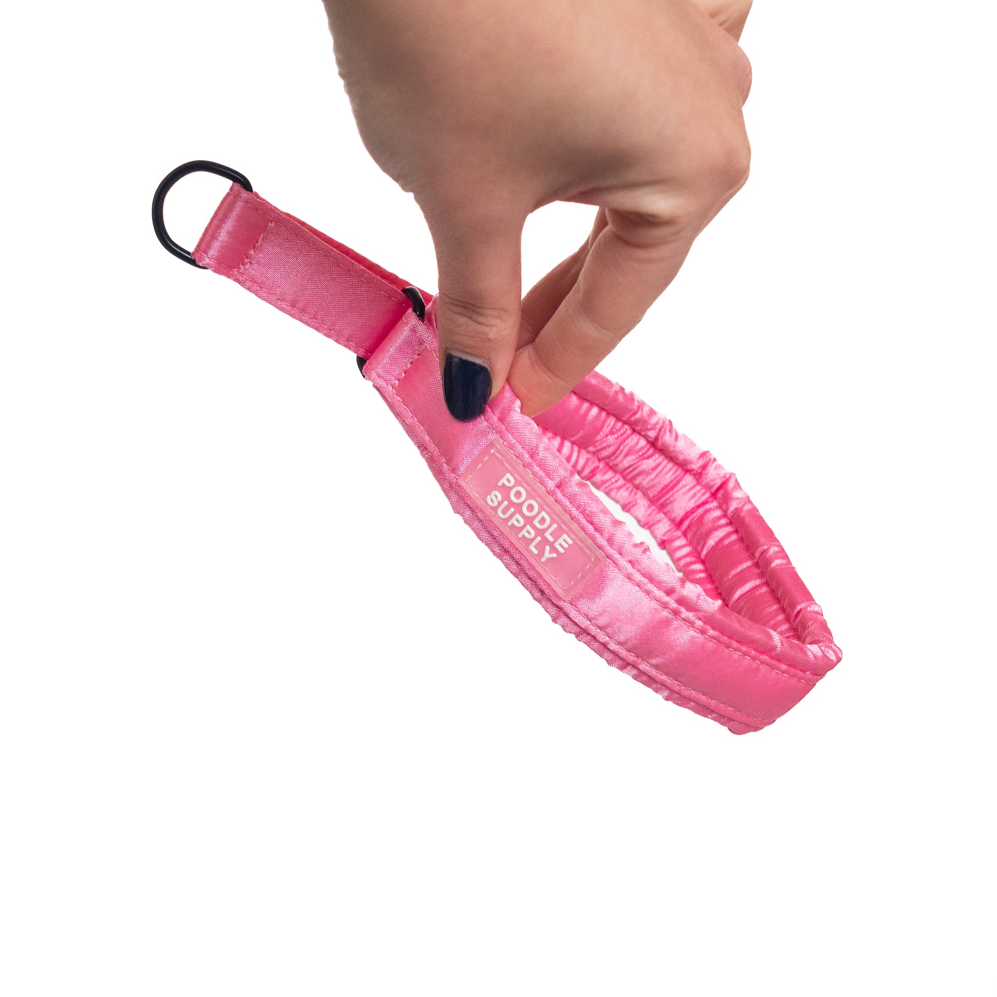 The Satin Martingale has no padding but is still incredibly soft, made from our signature satin. The Fluffy Martingale is padded for extra comfort. It also has a stopper, but unlike the classic martingale, it cannot be adjusted in the same way.