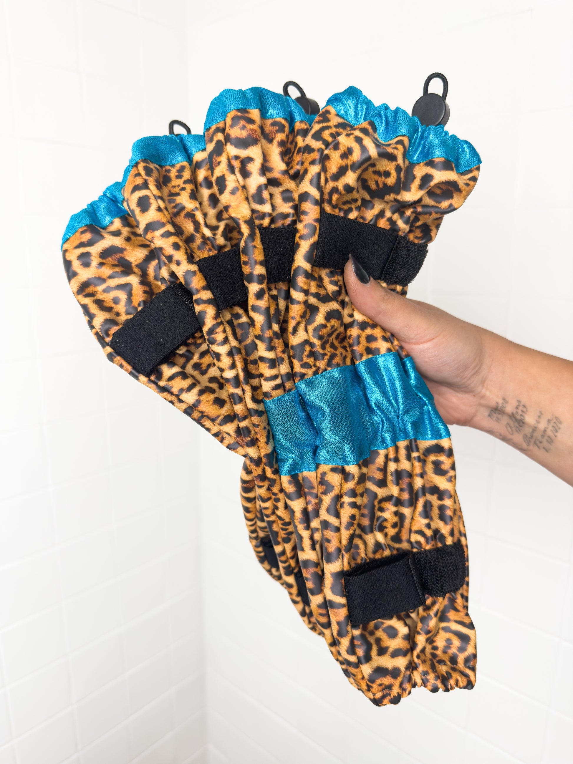 Poodle Supply Set 4 Leg Protectors Turquoise Full Leopard Limited Edition
